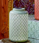 Garden Solar Moroccan Lantern LED Outdoor Lighting Hanging Decor Sage Green Lamp