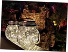 2 Pack Hanging Solar Powered LED Lights,Cracked Glass Ball Light, Warm White