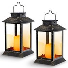 2 Pack 13" Black Solar Lantern with Flickering Flame Candle | Outdoor Waterpr...