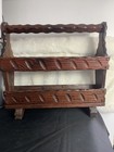 VINTAGE CARVED WOODEN MAGAZINE RACK RUSTIC DARK WOOD storage