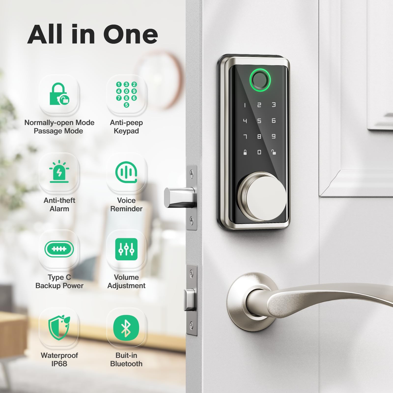 【Effortless Keyless Entry】The keyless entry door lock has multiple unlocking methods to get into your home, including fingerprint, password, IC card, NFC devices, Smart APP, and mechanical lock to ensure convenient entry. You will not be locked out or need to spend time searching pockets and bags.