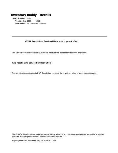 Fits 09-10 VIBE Speedometer Cluster US AWD OEM