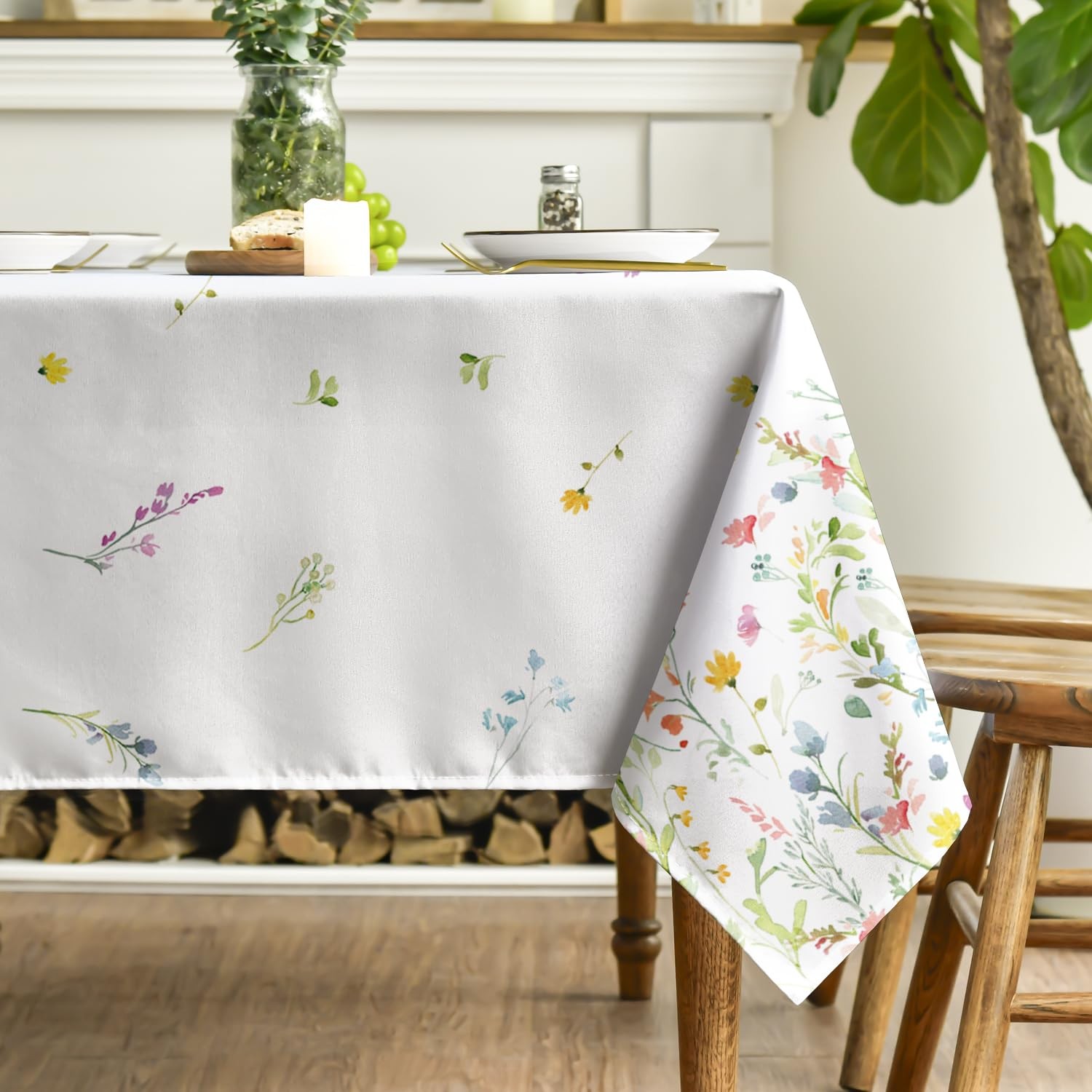Spring Tablecloth 60×84 Inch Rectangular, Light Green Flowers Washable Season...