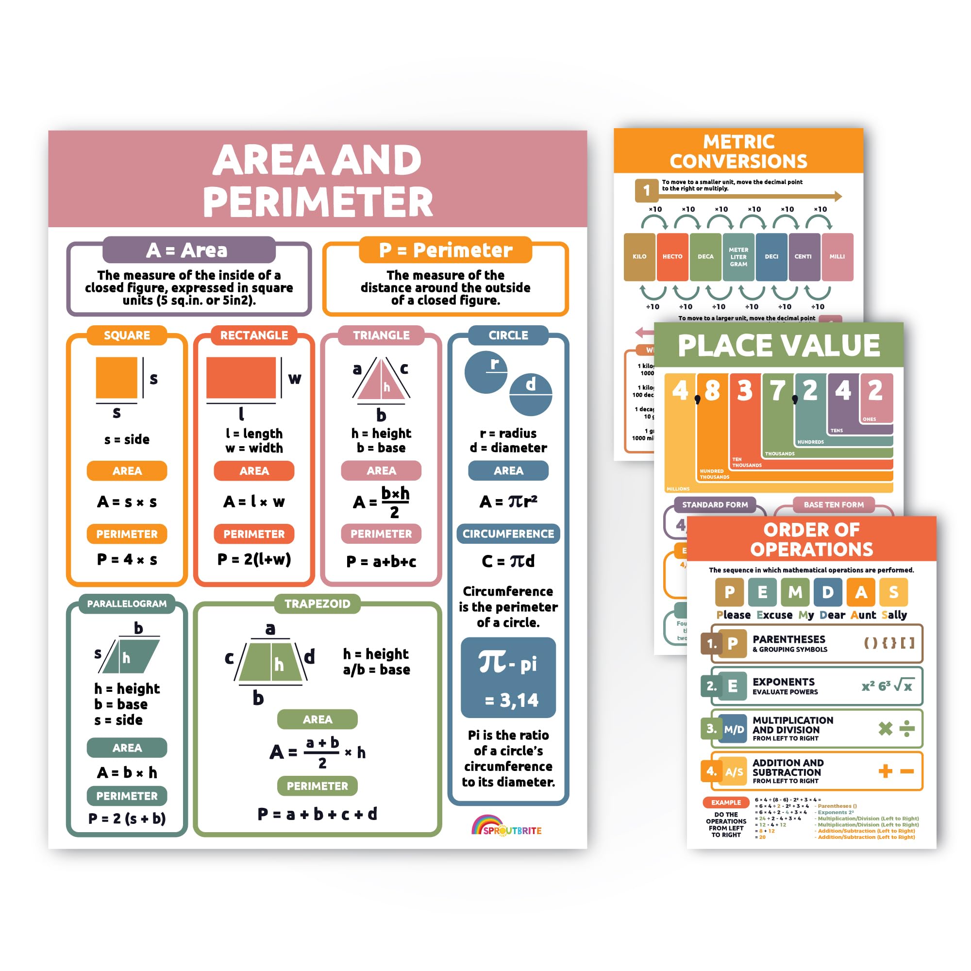 Sproutbrite Math Posters - Middle & High School 12 x 16 Inch, Bright