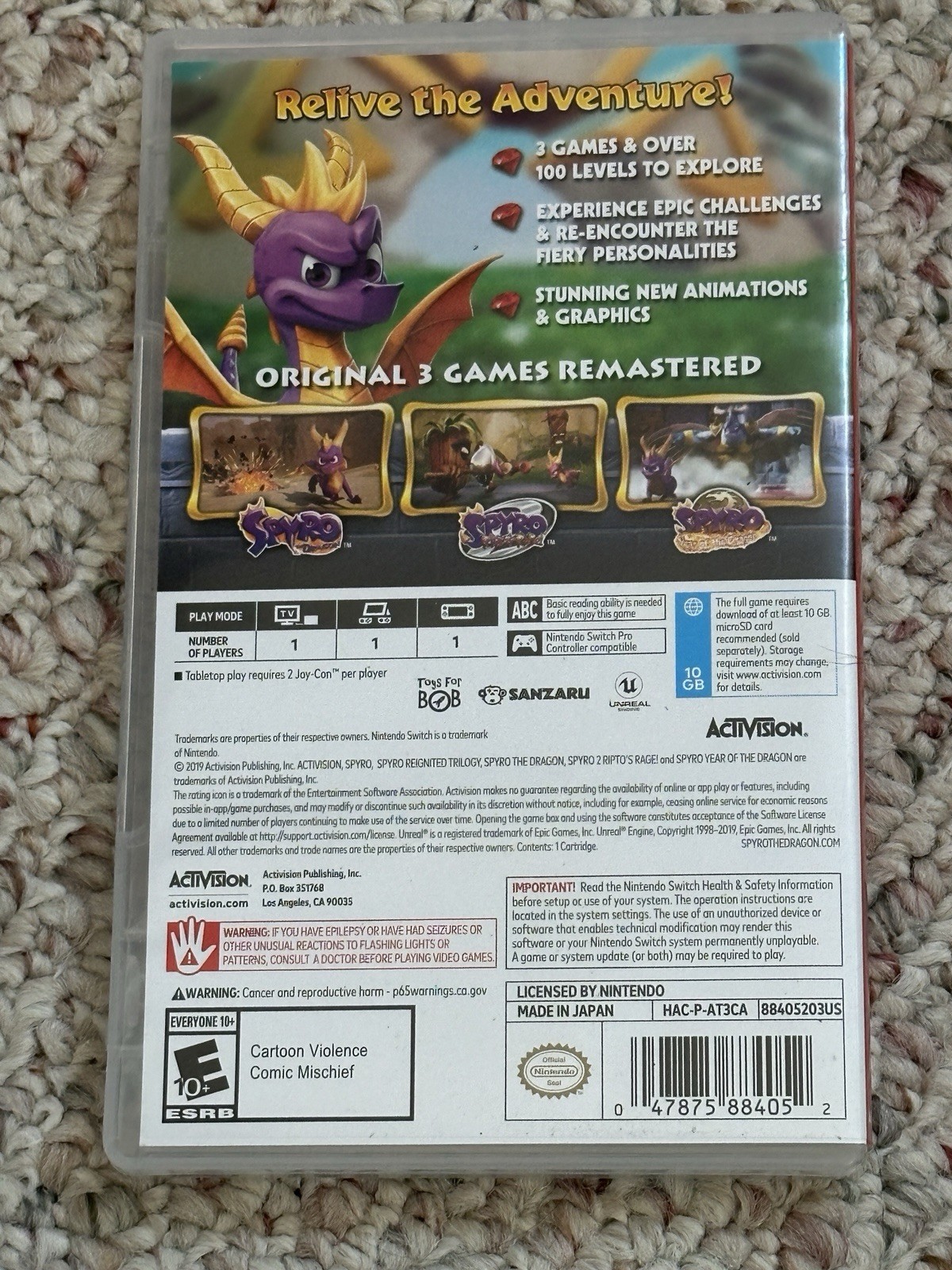 Spyro Reignited Trilogy - Nintendo Switch w/Case - TESTED!