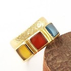 Square Red Jade Quartz Gold Plated Collet Set Statement Adjustable Ring