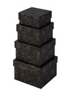 4 PC SET - Square Gift Boxes with Lids, Gold Black & White Marble, Nested Boxes