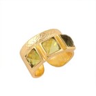 Green Peridot Quartz Square Chekar Cut Gold Plated Collet Set Adjustable Ring