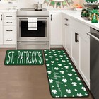 St Patricks Day Kitchen Rugs Set of 2, Non-Skid Washable Shamrock Clover Fron...