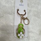 Green Gold White Flower Rhinestone Key Chain Metal Enamel Flip Flop Bag Charm