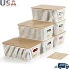 Stackable Plastic Storage Bins W/ Bamboo Lids & Labels Home Organization New