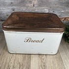 Vintage Bread Box Tin White Copper Colored Lid Flaws Hinged Lid Kitchen Farmhous