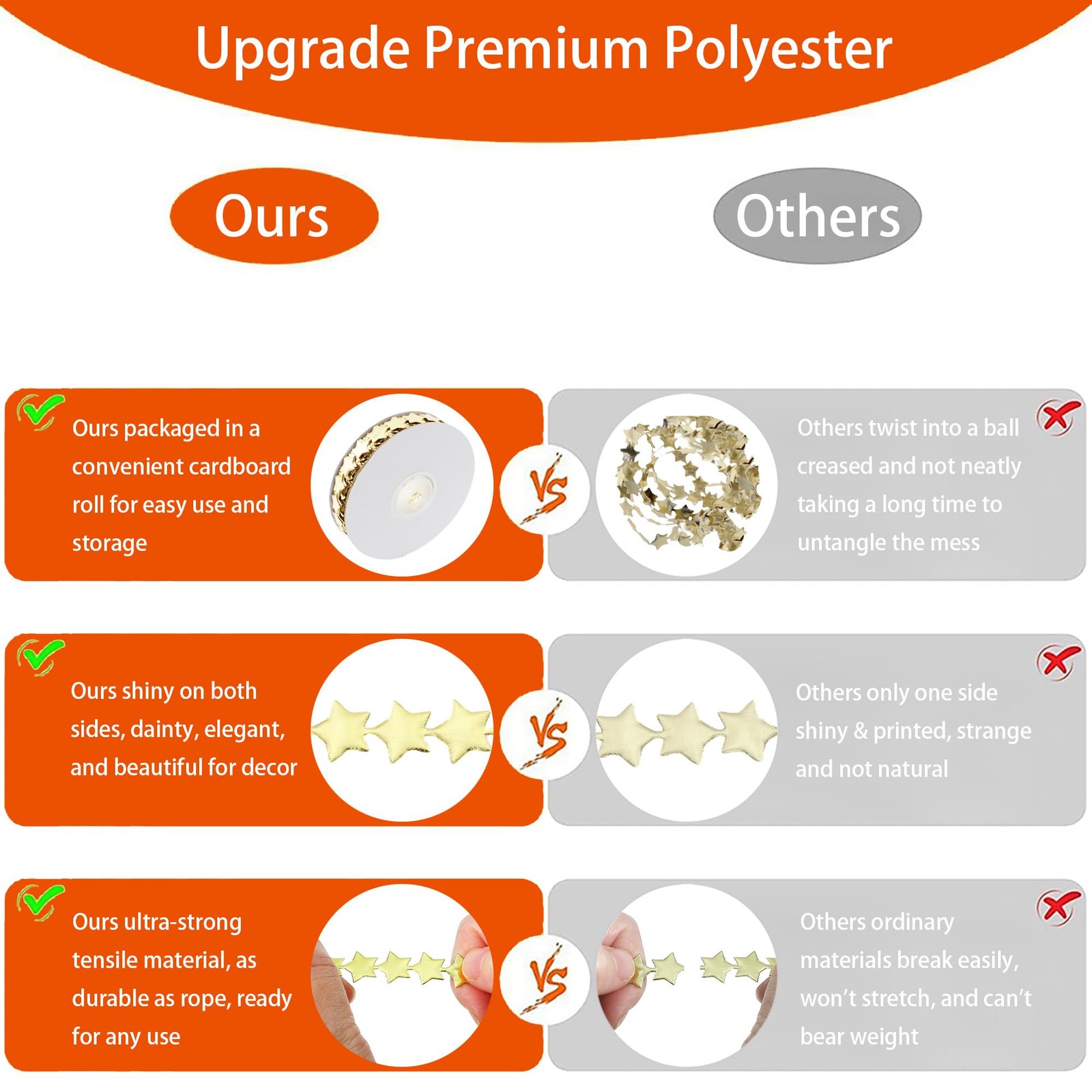 Feature: Shiny on both sides; Stretch-resistant; Trim at will
