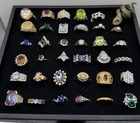 72 Vintage - Fashion Rings Jewelry lot 41 Rhinestone Variety Sizes Mixed Metals