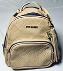 Steve Madden BBLOGO Embossed Mini Backpack Tan Beige Black Gold Hardware GOOD