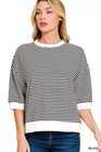 Zenana Stripe Contrast Trim Banded Bottom Top