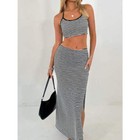 Perfee Striped Halter Neck Top and Slit Skirt Set