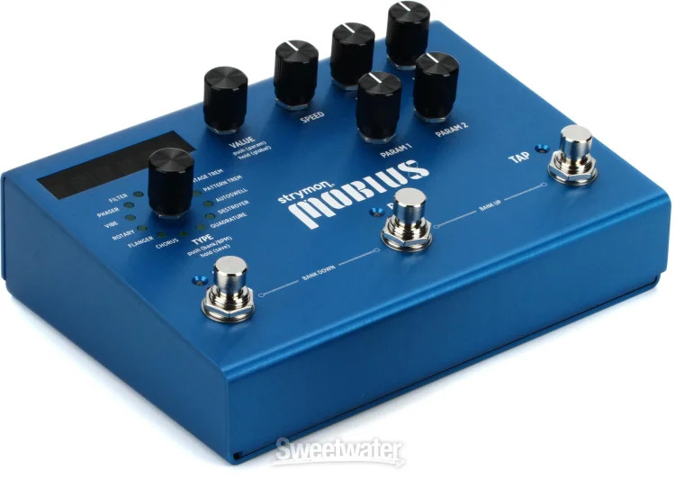 The Strymon Mobius Multidimensional Modulation multi-effects pedal offers a wide assortment of some of the highest-regarded modulation effects on the market. Twelve different types of modulation are available with a turn of a knob, and you can deeply edit the effects and store them in the 200 onboard preset slots. And an incredibly powerful SHARC DSP chip powers the pedal for the best sound quality possible. The Strymon Mobius Multidimensional Modulation pedal is powerful enough to take the place of a lot of pedals on your board.Plenty of power for your 12 styles of modulation