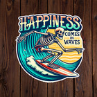 Skeleton sticker vinyl decal happiness comes in waves surf ocean funny mug