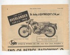 The Sun Overlander Twin Motorcycle Original Advertisement Removed from Magazine