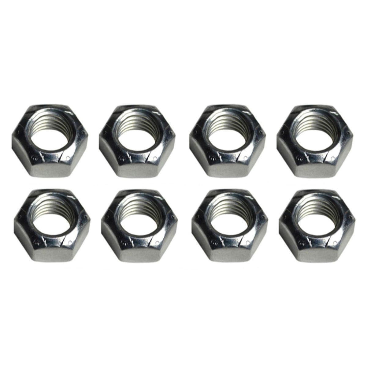 These are factory correct control arm lock nuts for all A, F, X, B-body cars. This kit includes silver zinc lock nuts. They are the correct size, shape and color plated for a concourse restoration. They are grade 8 plated in the correct color. The nuts are silver plated lock nuts just like the originals.