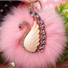 Cute Swan Crystal Fox Fur Keychain for Bag Car Pendant or Cellphone,Bag Pendant