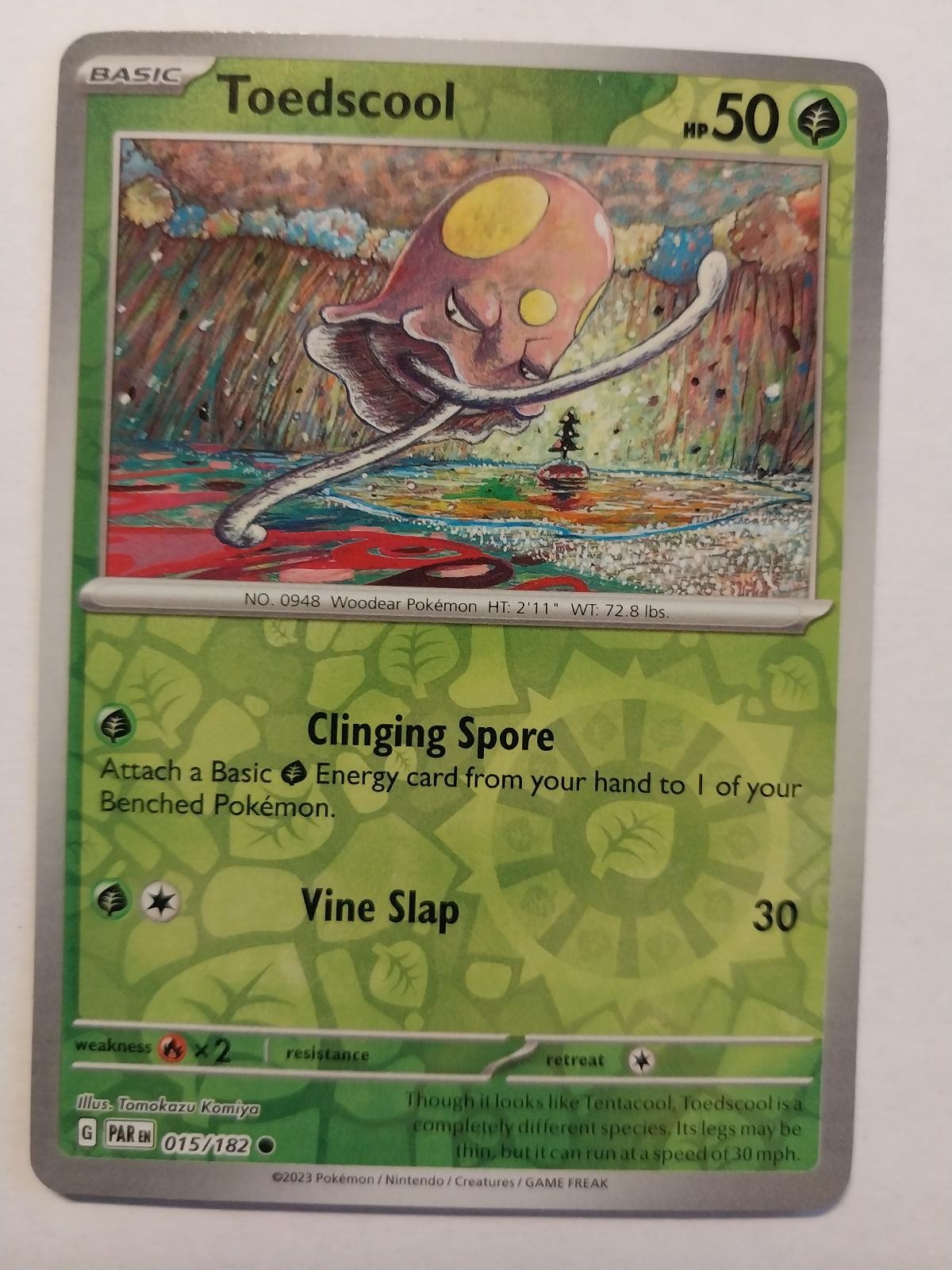 REVERSE HOLO Toedscool 015/182 NM / M Paradox Rift Pokemon Card Tomokazu Komiya
