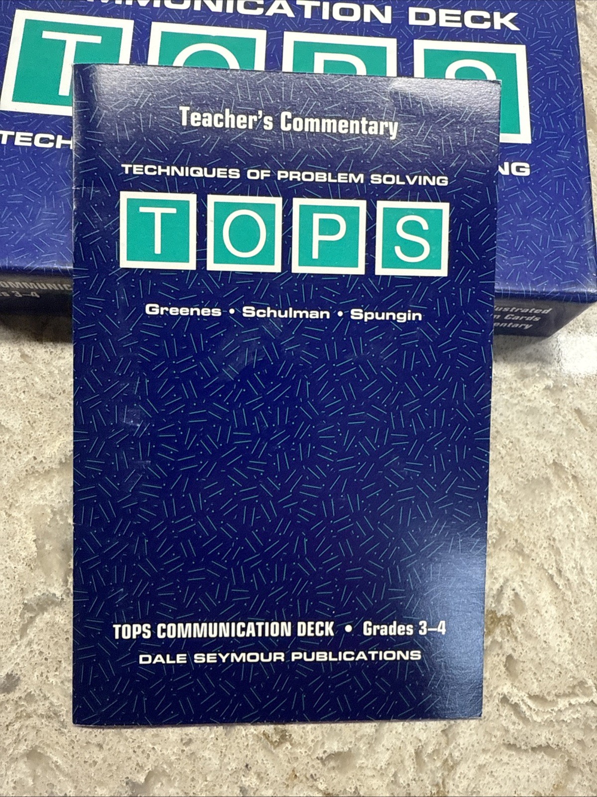 The TOPS Communication Deck Grades 3-4 Techniques of Problem Solving is a study guide published in 1993 by Dale Seymour Publications. Written by Greenes, Schulman, and Spungin, this flashcard-format book contains 100 pages of problem-solving techniques in English. Measuring 8 inches in length, 5.25 inches in width, and 1.25 inches in height, this textbook focuses on helping students in grades 3-4 develop their problem-solving skills.