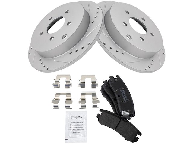 Package Contents: (1) Rear Semi-Metallic Brake Pad Set; (1) Rear Premium G-Coated Performance Brake Rotor Set