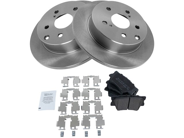 Package Contents: (2) Rear Brake Rotors; (1) 12 oz DOT 3 & 4 Brake Fluid; (1) 13 oz Non-Chlorinated 50 State Formula Brake Cleaner; (1) Rear Semi-Metallic Brake Pad Set with Contact Point Grease & Hardware