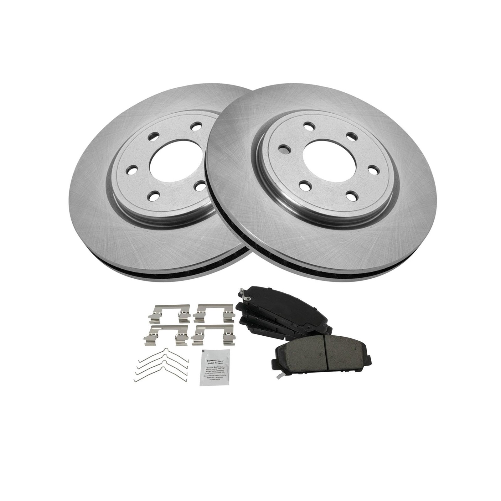 Kit Includes: 1 Front Ceramic Brake Pad Set; 2 Front Brake Rotors