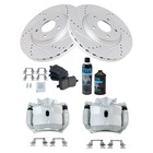 TRQ Front Ceramic Pad Coated Rotor & Calipers Kit w/Chemicals