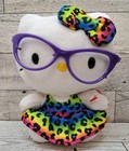TY SANRIO PLUSH Hello Kitty Neon Rainbow Leopard Dress Purple Glasses Stuffed