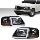 Fit For 97-04 F-150 Expedition LED DRL Headlights & Corner Lights Black/Clear