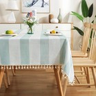 Table Cloth Blue White Striped Tablecloth Tassels Cotton Linen Dust-Proof Tab...