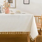 Farmhouse Tablecloth Heavy Weight Stitching Tassel Cotton Linen Dust-Proof Table