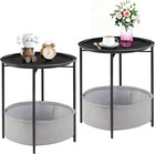 round Side/End Table with Fabric Storage Basket,Metal Anti-Rust and Waterproof S
