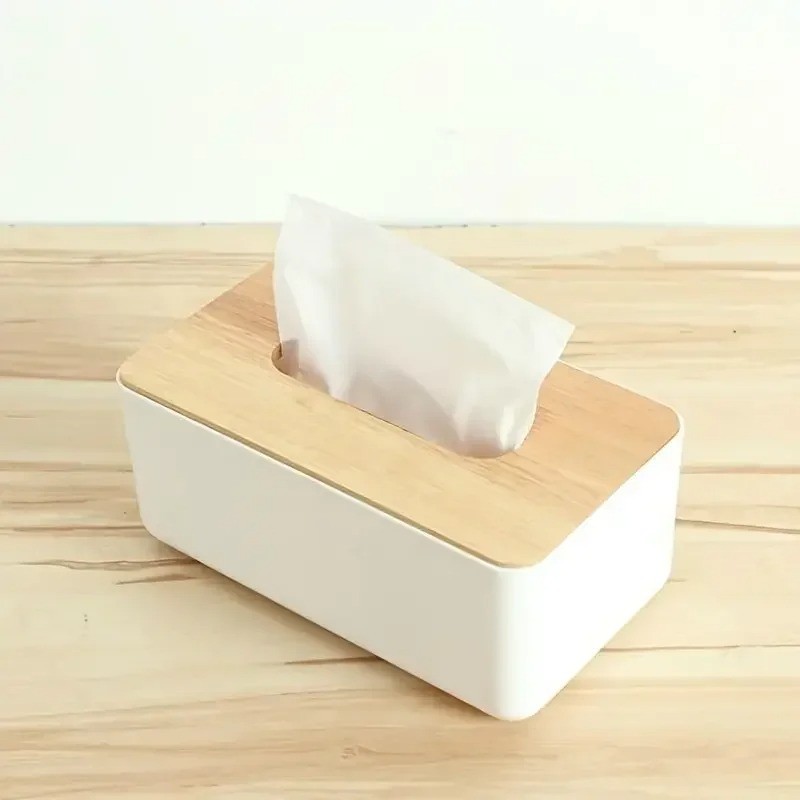 Nordic Plastic Tissue Box Holder with Wooden Lid Square Paper Dispenser Home UK