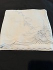 Vintage Blue Embroidered Cut Out White Linen Scalloped Tablecloth 32” Square