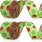 2 Rolls Wired Ribbon Christmas Tree Burlap Ribbon Green Red Glitter Polka Dot...