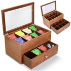 Wooden Tea Bag Organizer with Drawer – Tea Storage Box with 16 Compartments, ...