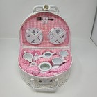Children's Porcelain Tea Set for 2 in Storage Case Wicker Basket
