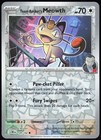 The product is a Team Rocket's Meowth card from the Pokemon TCG set "Destined Rivals." This common card features the character Team Rocket's Meowth and has a colorless attribute. It is illustrated by Megumi Mizutani and manufactured by Nintendo on standard card stock. The card is in near mint condition and is in English language. It is part of the basic stage in the game and has the card number 149/182. This collectable card is a must-have for any Pokemon enthusiast looking to add to their collection.