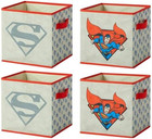Superman Kids Storage Cubes, 4 Pack Foldable Fabric Bins with Handles, Collapsib