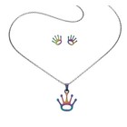 Stainless Steel Set Iridescent with pendant chain and matching earrings