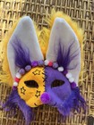 Clowncore Cat Furry/Therian Style Mask, Yellow And Purple Cat Mask