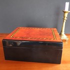 Vintage Large Burl Wood Cigar Humidor - High Gloss Inlay - Spanish Cedar Lining