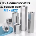 M3 M4 M5 M6 - M24 A2 Stainless Steel Hex Connector Nuts Threaded Rod Couplers