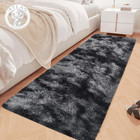 Tie-Dyed Runner Rug for Bedroom Black Grey 2x6ft Fluffy Area Rug Bedside Runn...