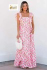 Pink Floral Print Square Neck Ruffled Strap Maxi Dress